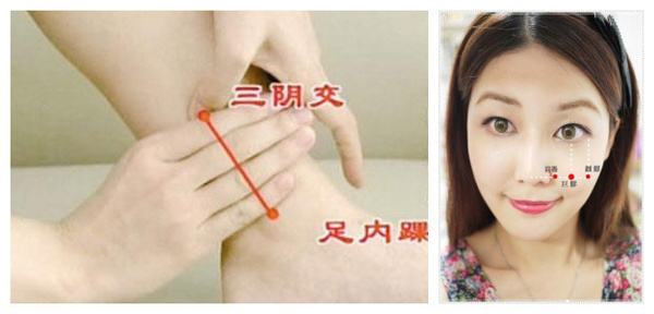 三陰交穴在腳踝內側往上約4橫指寬處,按摩此處可促進血液循環(huán),使臉部紅潤。手法以拇指指腹按壓,帶微酸感為宜,每次按10下,每天按3~4次!